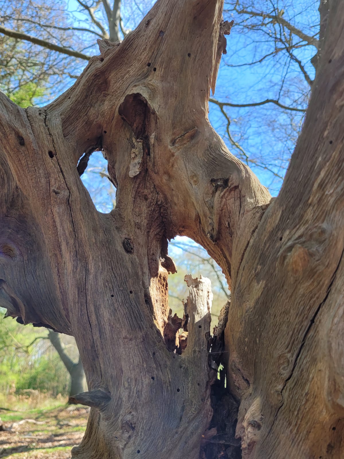 In andächtiger Stimmung genossen wir die Wanderung entlang der Scheiden-Schneise in der Rostocker Heide. Viele fantasievolle Ansichten bot uns der Wald und ehrwürdige Bäume säumten unseren Weg. Olaf wusste uns viel über den Wald und dessen Geschichte zu berichten und wies uns ebenfalls darauf hin, wie mit der Bewirtschaftung dessen auch gleichzeitig eine augenscheinliche Zerstörung einhergeht.
